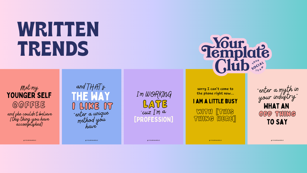 20 Canva Templates for Feed Posts that bring Reels and TikTok trends in text form using fun lettering.